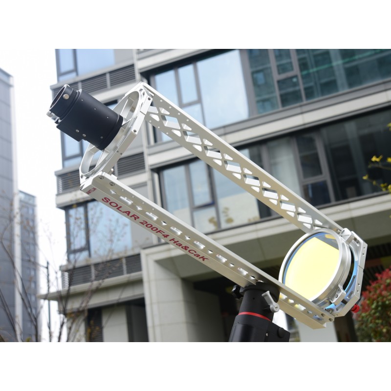 Le télescope Antlia SOLAR 200F4 Ha CaK est un instrument Newton spécialement conçu pour la photographie solaire haute précision. Il permet l’acquisition d’images dans les bandes Ha à 656 nm, CaK à 393 nm ainsi qu’en lumière blanche par remplacement du module de filtrage arrière, offrant ainsi une grande polyvalence d’utilisation en imagerie solaire.